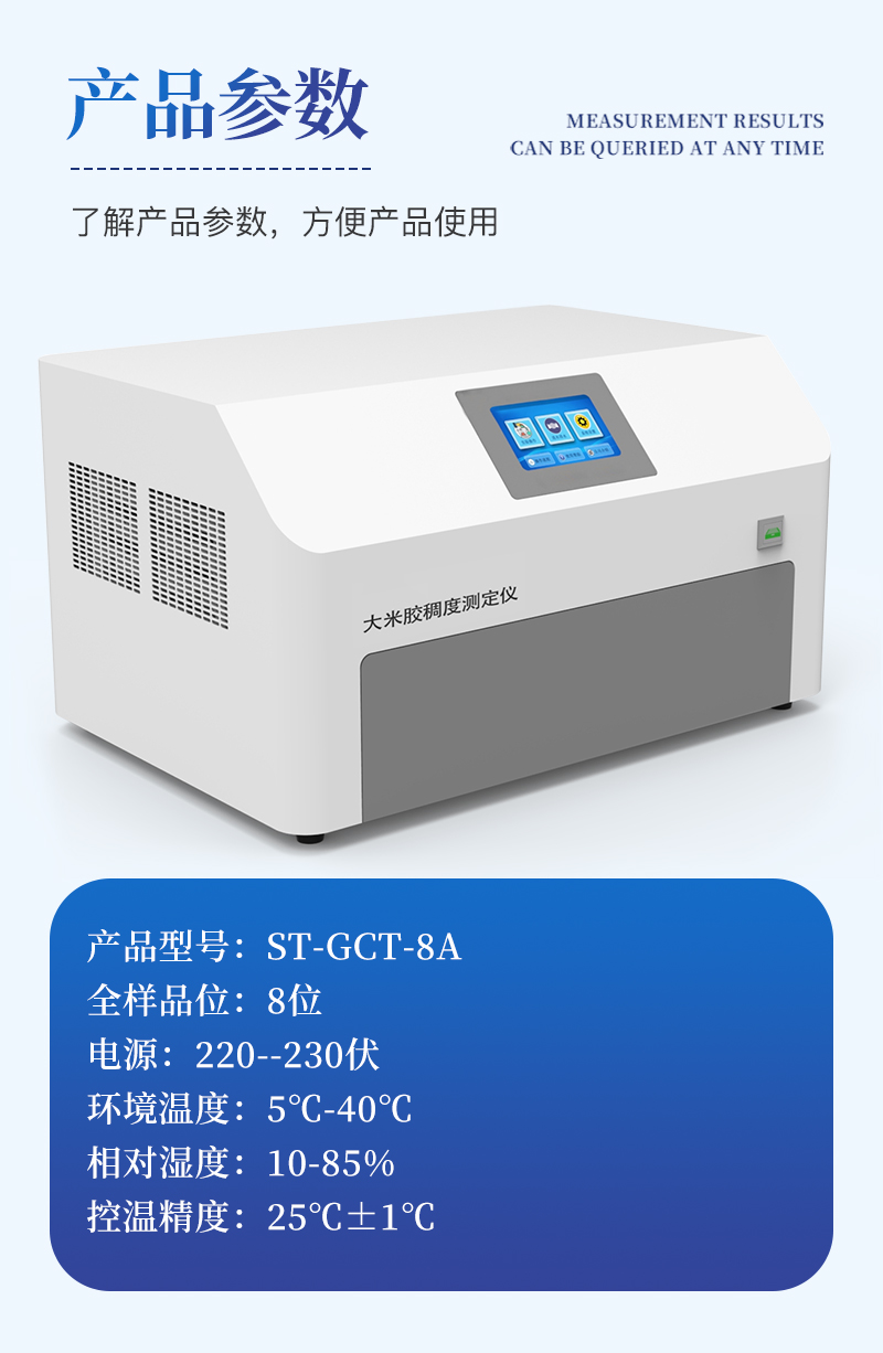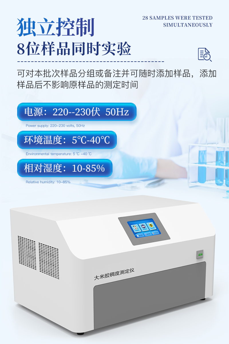 1、用途:適用于糧油檢測大米膠稠度的測量2、工作條件:2.1電源:220--230伏, 50Hz;環境溫度:5℃-40℃;相對濕度:10-85%3、技術指標要求★全樣品位:8位,★樣品位可獨立控制:每個樣品位獨立控制,*多實現8位樣品同時實驗。★恒溫控制功能:**的升溫和降溫模塊,自動控制實驗操作在