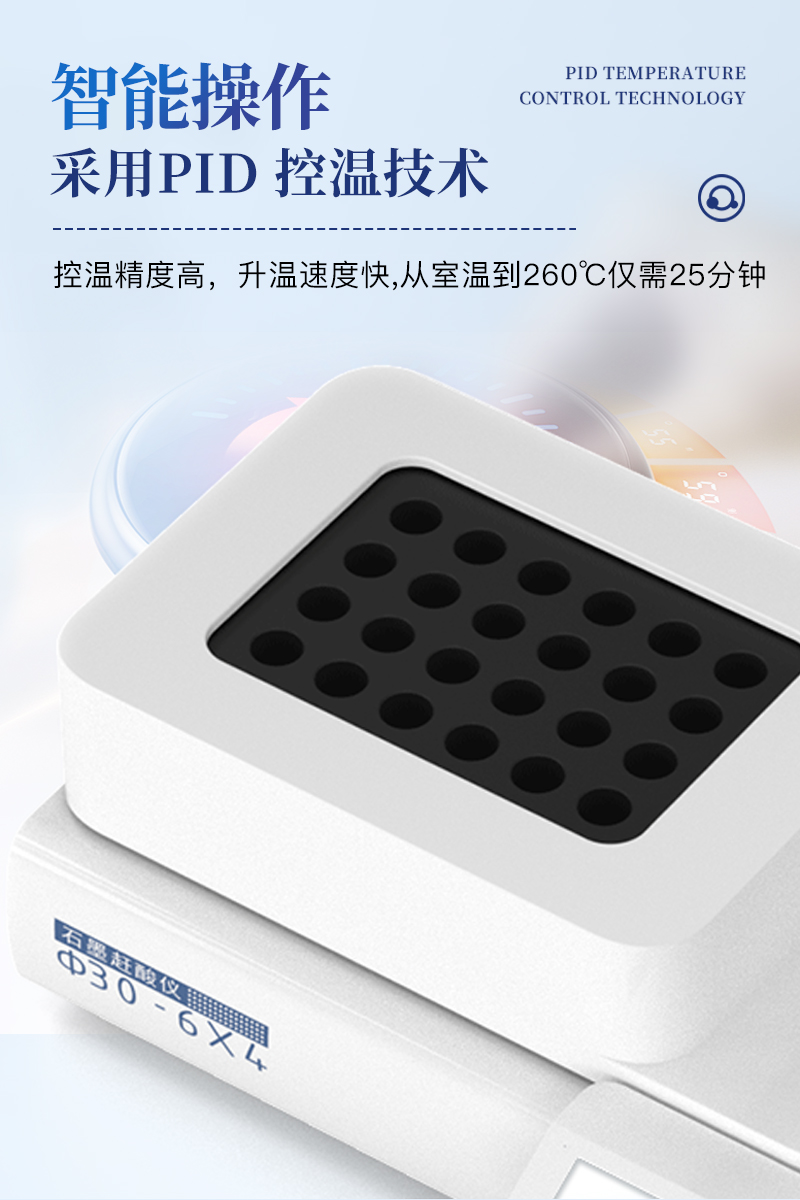 采用PID 控溫技術(shù),控溫精度高,升溫速度快, 從室溫到260℃僅需25分鐘。